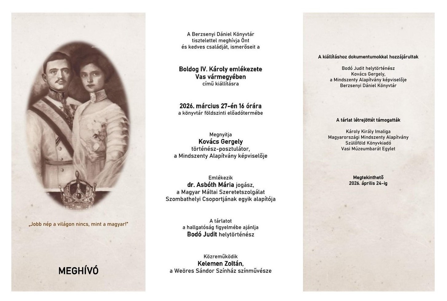 Boldog IV. Károly emlékezete – kiállítás 2026.03.27.
