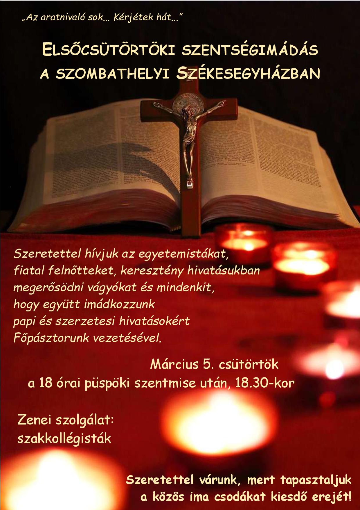 Elsőcsütörtöki szentségimádás a szombathelyi Székesegyházban Szerző: admin | 2026.03.02. | Hirdetések, Programok